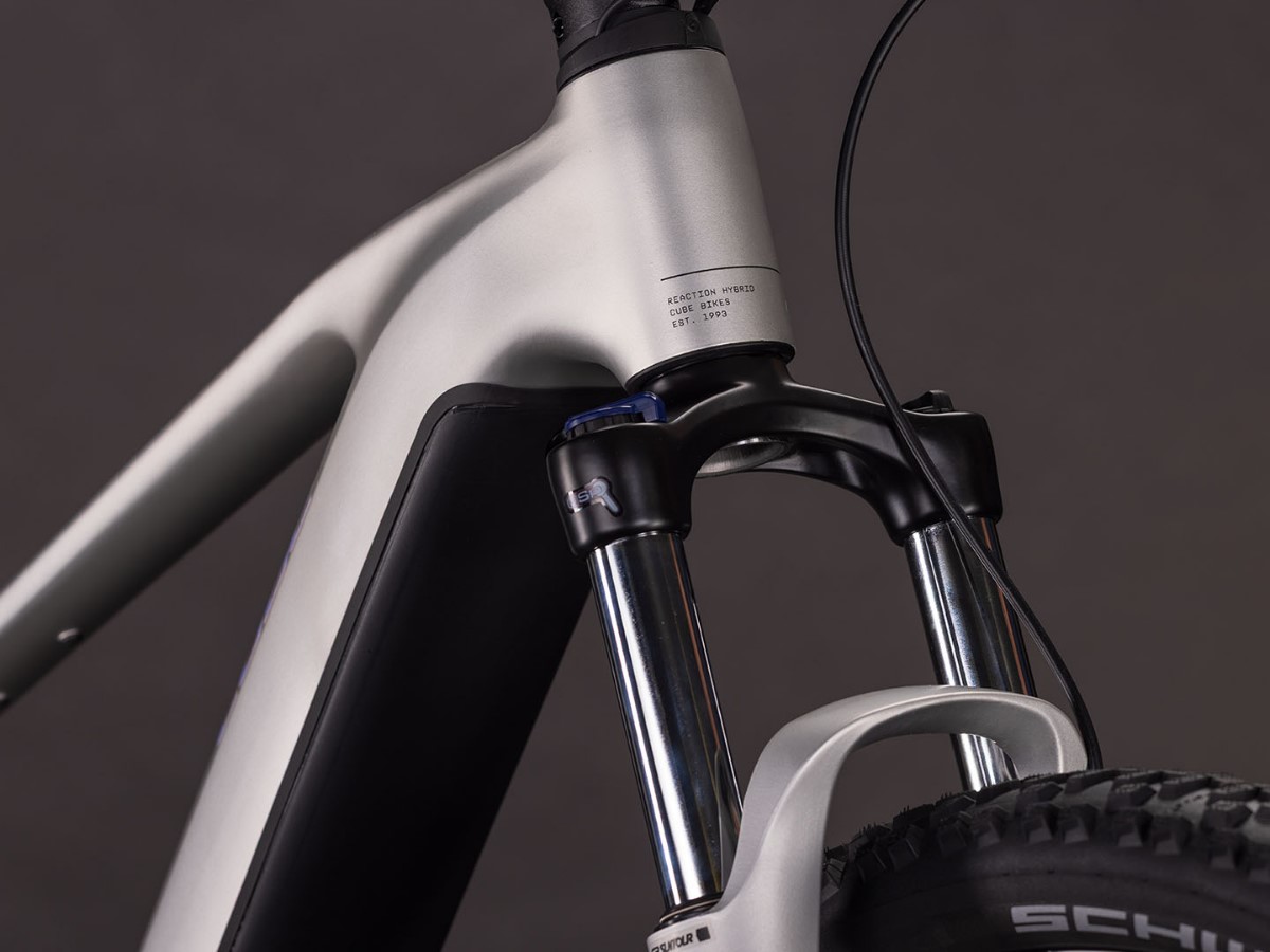 Die Eleganz und Qualität des Reaction Hybrid sind kein Zufall, denn der Rahmen kommt mit vielen cleveren Features daher. Sein 800 Wh starker PowerTube Akku von Bosch fügt sich gemeinsam mit dem Bosch CX Motor sicher, sauber und formschön ins Design ein. Zudem ist das Chassis PowerMore-ready, das heißt, es können bei Bedarf weitere 250 Wh mitfahren. Auch die integrierte Sattelklemmung und die nach innen verlegten Züge spielen der cleanen Linienführung in die Karten. Was noch? Eine Aufnahme für die Kettenführung und die Möglichkeit, ACID Schutzbleche, einen Gepäckträger und per X-Connect durch einfaches Aufstecken ein kompatibles ACID Vorderlicht nachzurüsten. Last, but not least haben wir dank unserem Size Split System für alle die richtige Passform im Angebot. Fazit: Alles da, was wichtig ist – für maximalen Fahrspaß!Egal wohin, egal wie lang – mit seinem geschmeidig arbeitenden Bosch Motor, 800 Wh starken Akku und cleveren CUBE Design rollt das Reaction Hybrid ONE dem Abenteuer entgegen! Dazu kommen zahlreiche clevere Features und ein eleganter Look. Aufsitzen, antreten – mit diesem E-Hardtail ist die Horizonterweiterung zum Greifen nah!Highlights