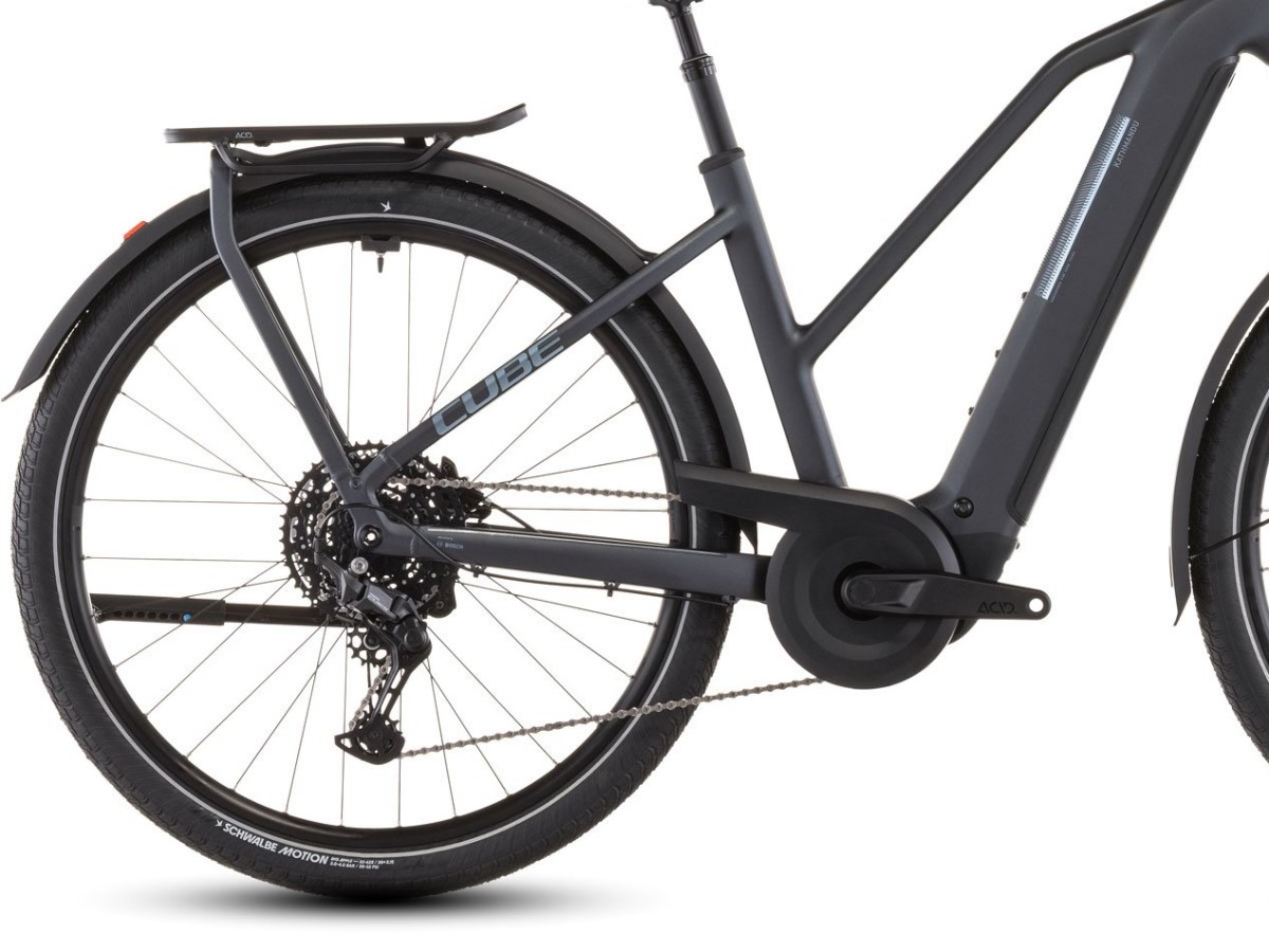 Elegantes, zeitloses Design – das ist das CUBE Kathmandu Hybrid. Auf den ersten Blick zumindest. Ein zweiter gibt den Weg frei auf jede Menge Innovationen und clevere Details. Dabei ist der samt 800 Wh PowerTube Akku ästhetisch und sauber ins Design integrierte CX Motor von Bosch nur eins der Highlights. Ein weiteres ist unsere Efficient Comfort Geometry, die harmonisch mit der 100 mm Federgabel Hand in Hand arbeitet, was die Kontrolle vor allem bei schwierigen Bedingungen optimiert. Dazu die interne Zugverlegung, die den cleanen Look des Chassis unterstreicht. Was noch? Ein vielseitiges, beinahe unzerstörbares UDH für einfache Ersatzteilverfügbarkeit, ein integrierter Kettenschutz und unser stabiler, robuster, überaus formschöner integrierter Gepäckträger IC 3.0, auf dem alles Platz findet, was auf Abenteuertour mit muss.