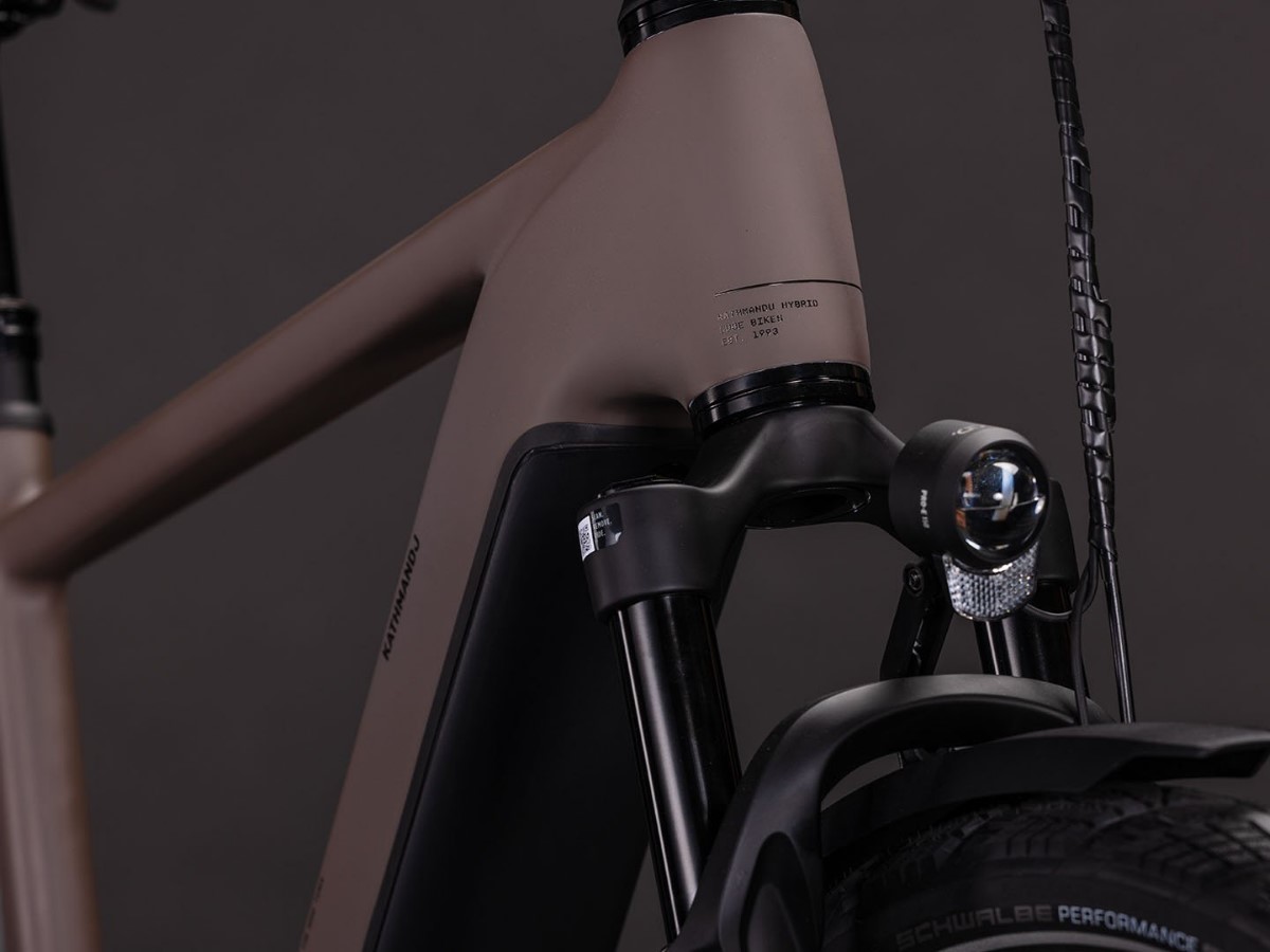 Der Rahmen des CUBE Kathmandu Hybrid sieht auf den ersten Blick vielleicht unspektakulär aus – auf den zweiten erschließen sich jedoch seine Eleganz und Klasse, außerdem die vielen Innovationen und cleveren Details. Dabei ist der samt 800 Wh PowerTube Akku ästhetisch und sauber ins Design integrierte CX Motor von Bosch nur eins der Highlights. Ein weiteres ist unsere Efficient Comfort Geometry, die harmonisch mit der 100 mm Federgabel Hand in Hand arbeitet, was die Kontrolle vor allem bei schwierigen Bedingungen optimiert. Dazu die interne Zugverlegung, die den cleanen Look des Chassis unterstreicht. Was noch? Ein vielseitiges, beinahe unzerstörbares UDH für einfache Ersatzteilverfügbarkeit, ein integrierter Kettenschutz und unser stabiler, robuster, überaus formschöner integrierter Gepäckträger IC 3.0, auf dem alles Platz findet, was auf Abenteuertour mit muss.Ob kreuz und quer durch City oder lange Touren über Land – auf das CUBE Kathmandu Hybrid EXC ist Verlass. Mit seinem Bosch CX Antrieb, dem hochkapazitiven 800 Wh Akku, der zuverlässigen Shimano XT 12-Gang Schaltung und ausgeklügelten ABS-Bremsen wird jede Route zum sicheren Hochgenuss!Highlights