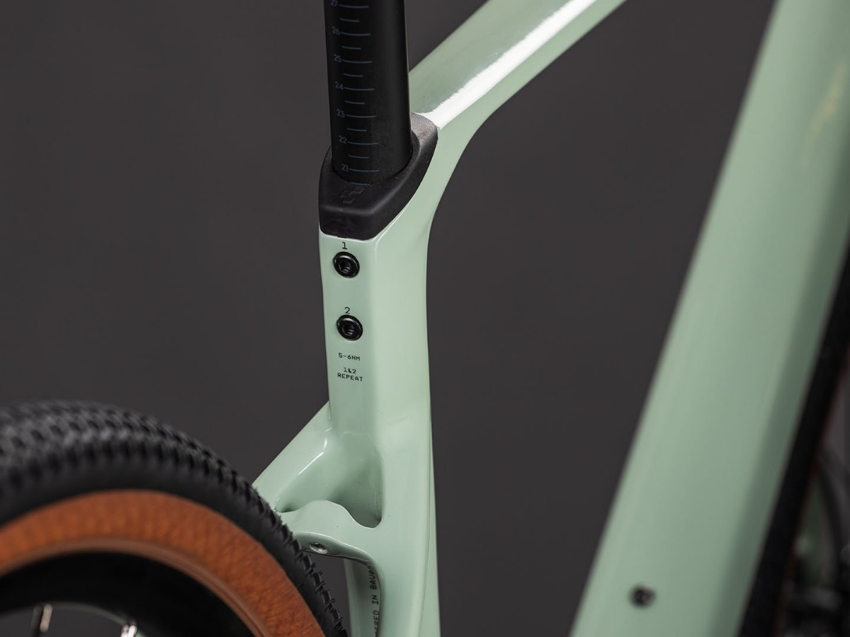 Im Chassis des Nuroad C:62 steckt unser gesamtes Know-how in Sachen Carbonrahmenbau speziell für den Gravel-Einsatz. Seine großzügige Reifenfreiheit ermöglicht die Aufnahme von bis zu 50 mm breiten Reifen – oder 45 mm breiten Pneus, dann sogar mit Schutzblechen. Außerdem gibt's eine integrierte Sattelklemmung und semi-integrierte Züge, was den cleanen, eleganten Look unterstreicht. Die Carbongabel aus unserem C:62® Carbon ist mit zwei verschiedenen Gepäckträger-Befestigungspunkten versehen und am Rahmen können Schutzbleche und ein Heck-Gepäckträger montiert werden. Ein weiteres Highlight ist das geringe Gewicht: lediglich 1150 g (bei mittlerer Größe). Insofern ist der Rahmen nicht nur superrobust, sondern auch superleicht. So geht Gravel-Biken heute!