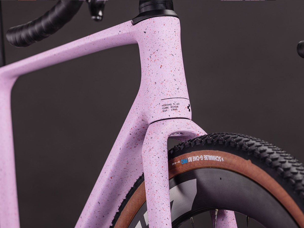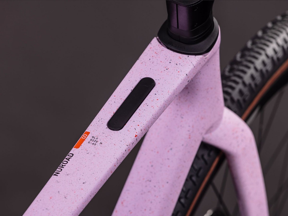 Im Chassis des Nuroad C:62 steckt unser gesamtes Know-how in Sachen Carbonrahmenbau speziell für den Gravel-Einsatz Seine großzügige Reifenfreiheit ermöglicht die Aufnahme von bis zu 50 mm breiten Pneus – ideal für alle, die ihre Reifenbreite noch präziser auf die individuellen Streckenanforderungen abstimmen möchten. Außerdem gibt's eine integrierte Sattelklemmung, semi-integrierte Züge und ein One-Piece-Carbon-Cockpit. Diese Details unterstreichen den cleanen, eleganten Look und schrauben das Gewicht nach unten. Die ebenso leichte Carbongabel aus unserem C:62® Carbon ist mit zwei verschiedenen Gepäckträger-Befestigungspunkten versehen. So erreichen wir das geringe Gewicht von lediglich 1150 g (bei mittlerer Größe). Insofern ist der Rahmen nicht nur superrobust, sondern auch superleicht. Volle Power auf Schotter – so geht Gravel heute.Wer gern pfeilschnell auf anspruchsvollen Strecken unterwegs ist, braucht ein Bike, das dieser Herausforderung gewachsen ist. Eins wie das Nuroad C:62 SLX. Mit seinem C:62® Carbonrahmen samt Vollcarbongabel erinnert es an unsere Straßenrennräder, die Gravel-spezifische Geometrie, robuste CUBE Konstruktion und sorgfältig ausgesuchten Komponenten machen es maximal geländetauglich.Highlights