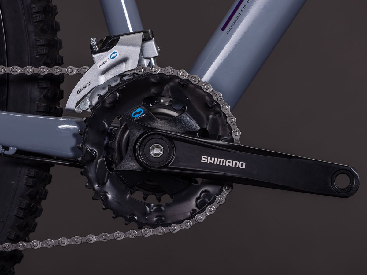 Ein richtig gutes Bike ist allzeit bereit für alles, was ansteht – und macht zugleich riesig Spaß! Gut, dass wir das AIM ONE dazu mit einer 100 mm Federgabel und griffigen 2.25 Zoll Reifen ausgestattet haben, das Ergebnis: top Fahrkomfort, gepaart mit einem kontrollierten Fahrgefühl auf allen Strecken und Wegen. Seine 2x8-Gang Schaltung von Shimano ist so breit gefächert, dass sie die Power aus den Beinen stets optimal übersetzt auf den Untergrund bringt. Selbst bei Nässe zuverlässig und sicher gebremst wird mit leistungsstarken Shimano Scheibenbremsen. Praktisch: Dank unserem breit aufgestellten Size Split System finden alle das für sich perfekt passende Aim.