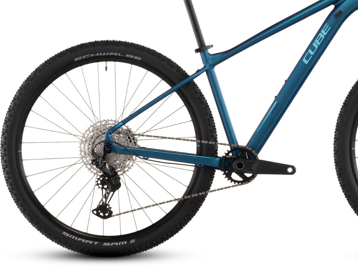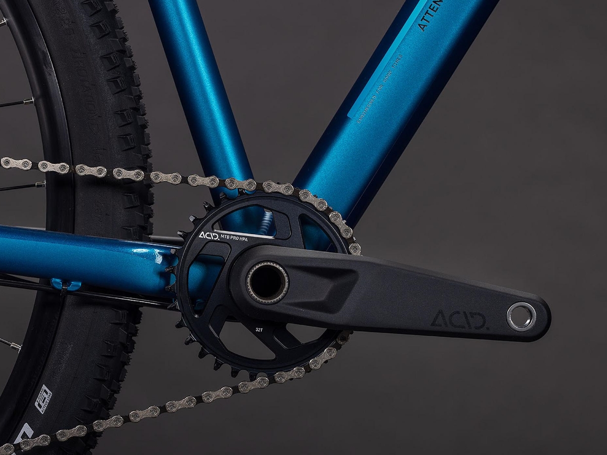 Der Attention Rahmen besticht mit seinem supercleanen Look – verantwortlich dafür: die im Smooth Welding Verfahren hergestellten Verbindungen an Steuer- und Sattelrohr. Außerdem haben wir ein geschraubtes Tretlager verbaut und die Züge ins Innere verlegt. Es gibt sogar eine Aufnahme für Flat Mount Scheibenbremsen, die nahtlos in unsere Seitenständeraufnahme integriert ist. Montagepunkte für ACID Schutzbleche und Gepäckträger sind auch mit dabei. Die spezielle Geometrie mit einem niedrigeren Oberrohr für superzuverlässiges Handling lässt viel Platz für breite, griffige, komfortable 2.25 Zoll Reifen. Dazu ist unser Size Split System breit aufgestellt – so finden alle das für sich und ihre Anforderungen optimal passende Attention.Hardtail ist Hardtail, kennst du eines, kennst du alle? Mitnichten! Zwar sieht man dem eleganten Rahmen des Attention Pro die vielen raffinierten Details und Nachrüstoptionen auf den ersten Blick nicht an. Aber wenn's auf die Trails geht, lässt sich dieses Bike nicht lumpen. Seine Federgabel und zahlreiche weitere zuverlässige Komponenten vollbringen Bestleistungen!Highlights