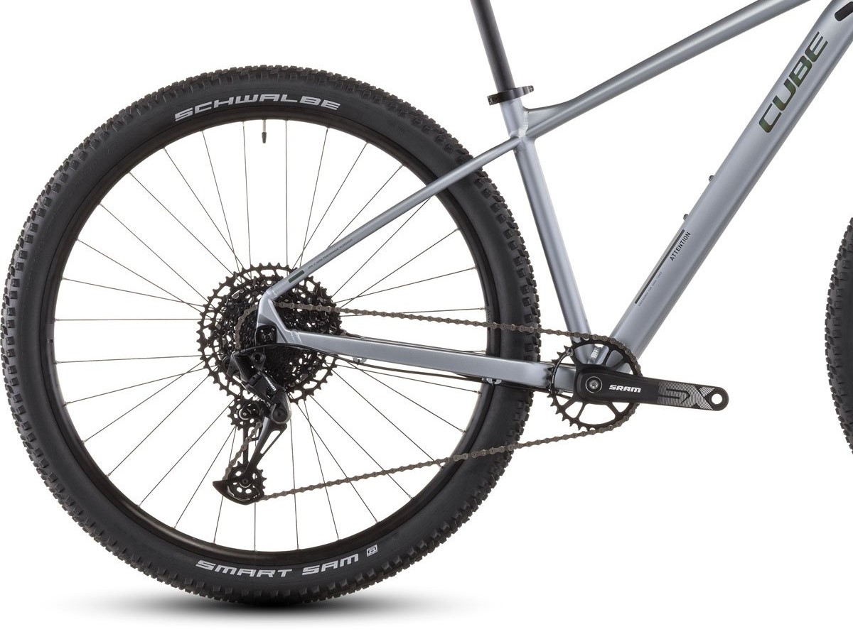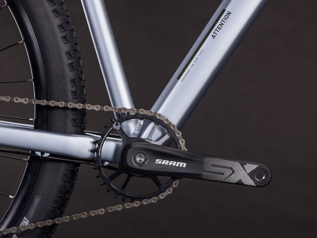 Der Attention Rahmen besticht mit seinem supercleanen Look – verantwortlich dafür: die im Smooth Welding Verfahren hergestellten Verbindungen an Steuer- und Sattelrohr. Außerdem haben wir ein geschraubtes Tretlager verbaut und die Züge ins Innere verlegt. Es gibt sogar eine Aufnahme für Flat Mount Scheibenbremsen, die nahtlos in unsere Seitenständeraufnahme integriert ist. Montagepunkte für ACID Schutzbleche und Gepäckträger sind auch mit dabei. Die spezielle Geometrie mit einem niedrigeren Oberrohr für superzuverlässiges Handling lässt viel Platz für breite, griffige, komfortable 2.25 Zoll Reifen. Dazu ist unser Size Split System breit aufgestellt – so finden alle das für sich und ihre Anforderungen optimal passende Attention.Sieht genial aus, ist genial: Mit seiner cleanen Linienführung und den feinabgestimmten Details vermittelt das Attention SLX unweigerlich den Eindruck eines Vollblut-Hardtails. Bestätigt wird dieser durch die Luftfedergabel von RockShox und den 12-Gang Antrieb von Sram. Kurz: Wenn der Trail ruft, steht dieses Hardtail bereit!Highlights