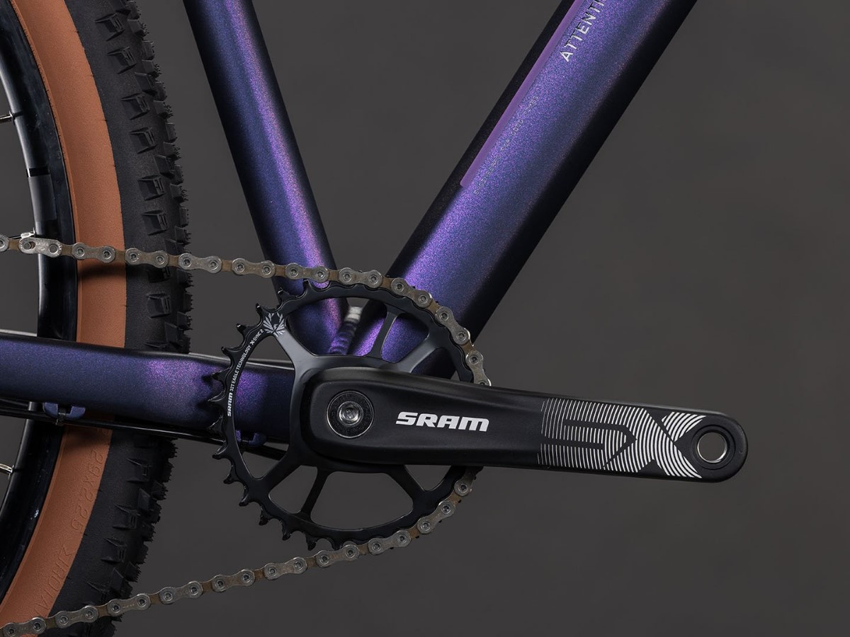 Der Attention Rahmen besticht mit seinem supercleanen Look – verantwortlich dafür: die im Smooth Welding Verfahren hergestellten Verbindungen an Steuer- und Sattelrohr. Außerdem haben wir ein geschraubtes Tretlager verbaut und die Züge ins Innere verlegt. Es gibt sogar eine Aufnahme für Flat Mount Scheibenbremsen, die nahtlos in unsere Seitenständeraufnahme integriert ist. Montagepunkte für ACID Schutzbleche und Gepäckträger sind auch mit dabei. Die spezielle Geometrie mit einem niedrigeren Oberrohr für superzuverlässiges Handling lässt viel Platz für breite, griffige, komfortable 2.25 Zoll Reifen. Dazu ist unser Size Split System breit aufgestellt – so finden alle das für sich und ihre Anforderungen optimal passende Attention.Sieht genial aus, ist genial: Mit seiner cleanen Linienführung und den feinabgestimmten Details vermittelt das Attention SLX unweigerlich den Eindruck eines Vollblut-Hardtails. Bestätigt wird dieser durch die Luftfedergabel von RockShox und den 12-Gang Antrieb von Sram. Kurz: Wenn der Trail ruft, steht dieses Hardtail bereit!Highlights