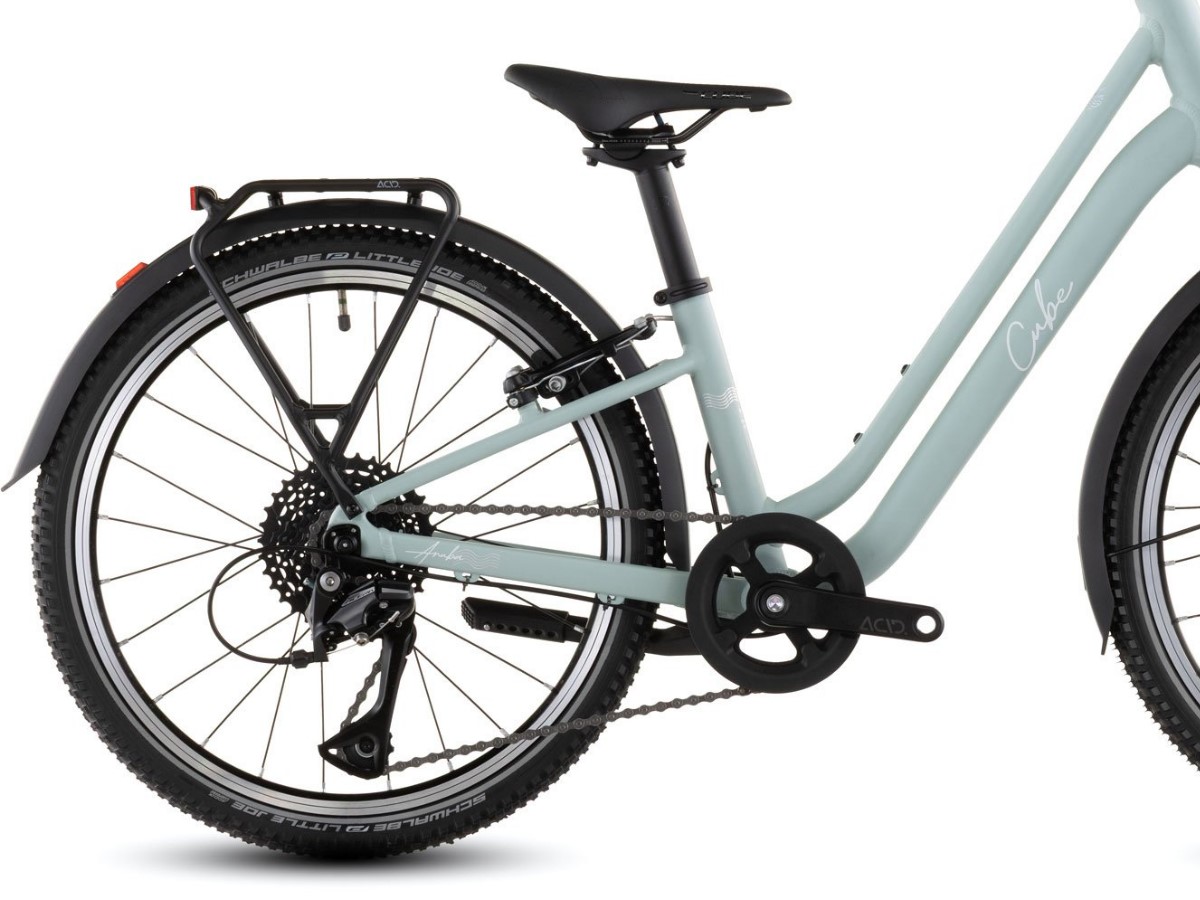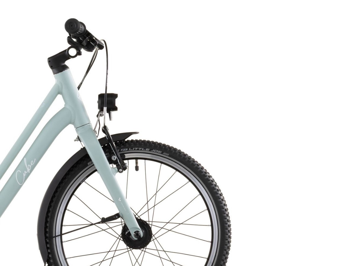 Dieser kindgerecht proportionierte, hitzebehandelte 6061er-Aluminiumrahmen von CUBE ist überaus leicht und robust, und zwar dank dem speziell geformten Unterrohr, das exakt auf das geringere Gewicht der Kids zugeschnitten wurde. Weil sich der eine oder andere Sturz kaum vermeiden lässt, kann zudem das Schaltauge ausgewechselt werden. Selbstverständlich hat der Chassis des Aruba 200 dieselben strengen Tests durchlaufen wie alle unsere Rahmen und übertrifft sogar sämtliche relevanten Sicherheitsanforderungen.Auf den ersten Blick ist das Aruba 200 einfach nur wunderschön anzusehen. Auf den zweiten ein superfunktioneller Zweiradpartner für Kids, die begeistert die Welt entdecken. Mit seiner Zubehör-Vollausstattung – Gepäckträger, Schutzbleche, Lichter und Seitenständer – ist das Bike stets für alles bereit!