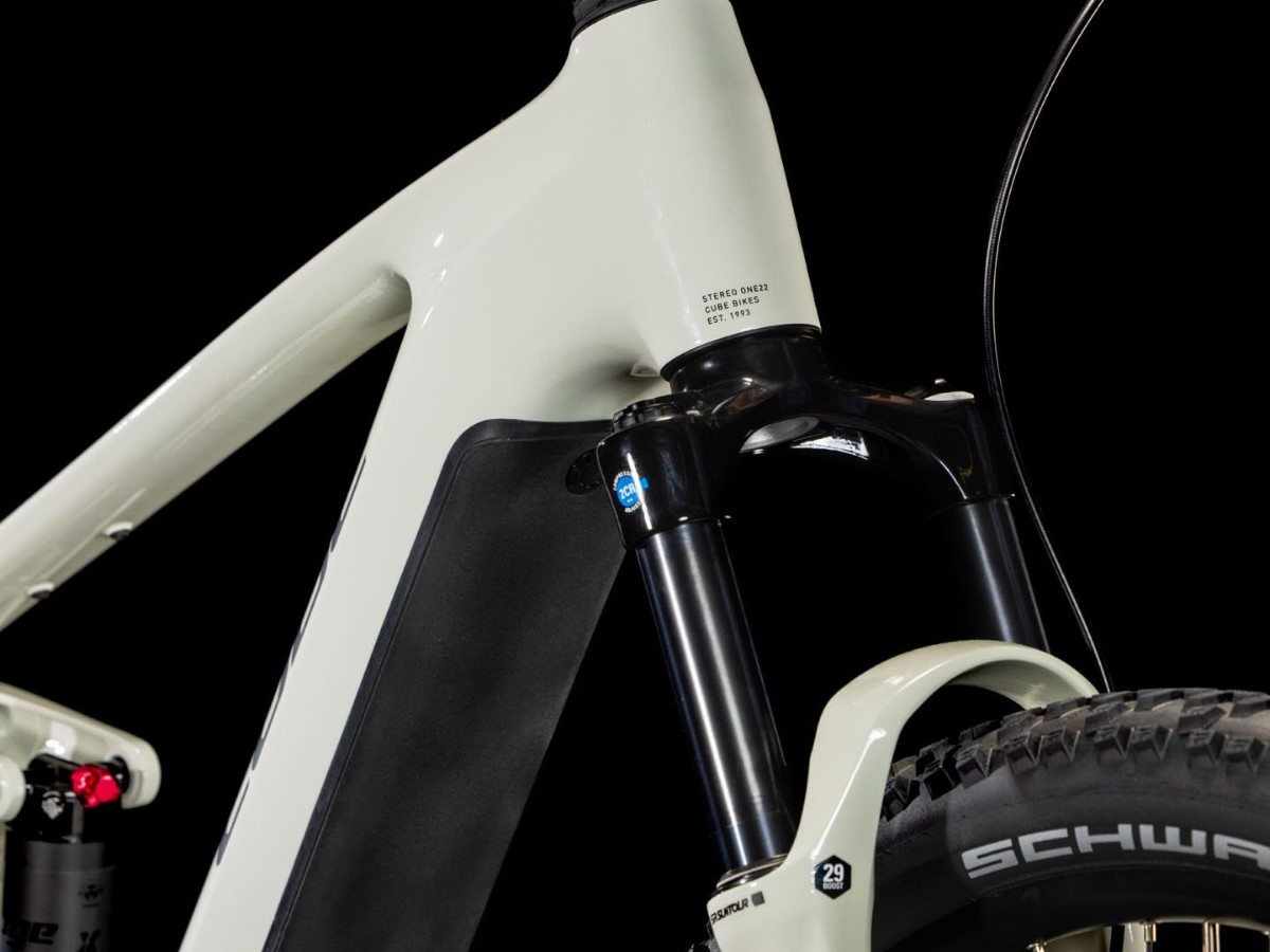 Das Stereo Hybrid ONE22 Pro fährt sich in jedem Gelände top souverän. Dank eines leistungsstarken Bosch CX Antriebs mit Purion 200 Display und PowerTube Akku ist kompromisslose Unterstützung garantiert, selbst an langen Tagen am Berg und vielen Kilometern Trail. Dabei bringt die einfach bedienbare Shimano Cues 10-fach Schaltung den Vortrieb wohldosiert auf den Untergrund. Weil wir eine Luftfedergabel und einen Dämpfer von Suntour verbaut haben, die effizient mit unserer bewährten CUBE Kinematik zusammenarbeiten, fährt sich dieser Offroad-Allrounder zudem nicht nur superbequem, sondern klebt förmlich auf dem Trail. 1a-Geschwindigkeitskontrolle und ein sicheres Fahrgefühl sind das Spezialgebiet der kräftig zupackenden hydraulischen Magura MT Thirty Scheibenbremsen und griffigen Schwalbe 2.6 Zoll Pneus. Zeit, die ausgewiesenen Wege für immer hinter sich zu lassen ...