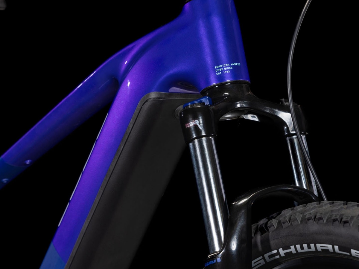 Unser Spezialgebiet hier bei CUBE? Eindeutig unsere eleganten, hochwertigen Rahmen. Ein Paradebeispiel dafür ist der schlanke, glatte Reaction Hybrid mit all seinen cleveren Features. Sein starker PowerTube Akku und der Bosch CX Motor sind so formschön, sauber und sicher ins Design integriert, dass sie kaum auffallen. Außerdem ist das Chassis PowerMore-ready, das heißt, es können bei Bedarf weitere 250 Wh mitfahren. Dazu betonen die integrierte Sattelklemmung und die interne Zugverlegung die cleane Optik. Was noch? Ein UDH für einfache Ersatzteilverfügbarkeit, eine Aufnahme für die Kettenführung und die Möglichkeit, ACID Schutzbleche nachzurüsten. Last, but not least haben wir dank unserem Size Split System für so gut wie jeden Fahrer die perfekte Passform im Angebot. Fazit: Alles da, was wichtig ist – für maximalen Fahrspaß!