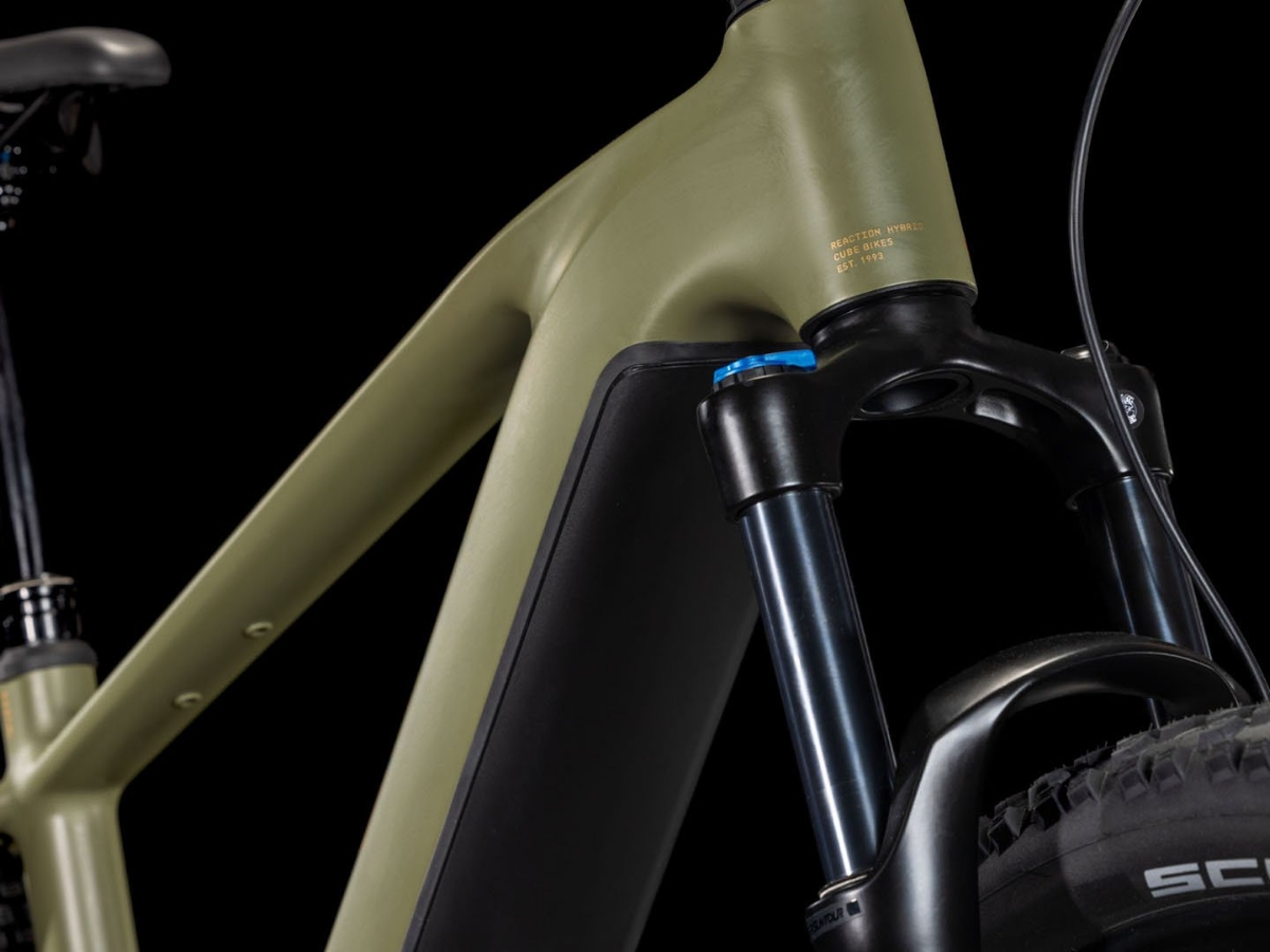 Unser Spezialgebiet hier bei CUBE? Eindeutig unsere eleganten, hochwertigen Rahmen. Ein Paradebeispiel dafür ist der schlanke, glatte Reaction Hybrid mit all seinen cleveren Features. Sein starker PowerTube Akku und der Bosch CX Motor sind so formschön, sauber und sicher ins Design integriert, dass sie kaum auffallen. Außerdem ist das Chassis PowerMore-ready, das heißt, es können bei Bedarf weitere 250 Wh mitfahren. Dazu betonen die integrierte Sattelklemmung und die interne Zugverlegung die cleane Optik. Was noch? Ein UDH für einfache Ersatzteilverfügbarkeit, eine Aufnahme für die Kettenführung und die Möglichkeit, ACID Schutzbleche nachzurüsten. Last, but not least haben wir dank unserem Size Split System für so gut wie jeden Fahrer die perfekte Passform im Angebot. Fazit: Alles da, was wichtig ist – für maximalen Fahrspaß!