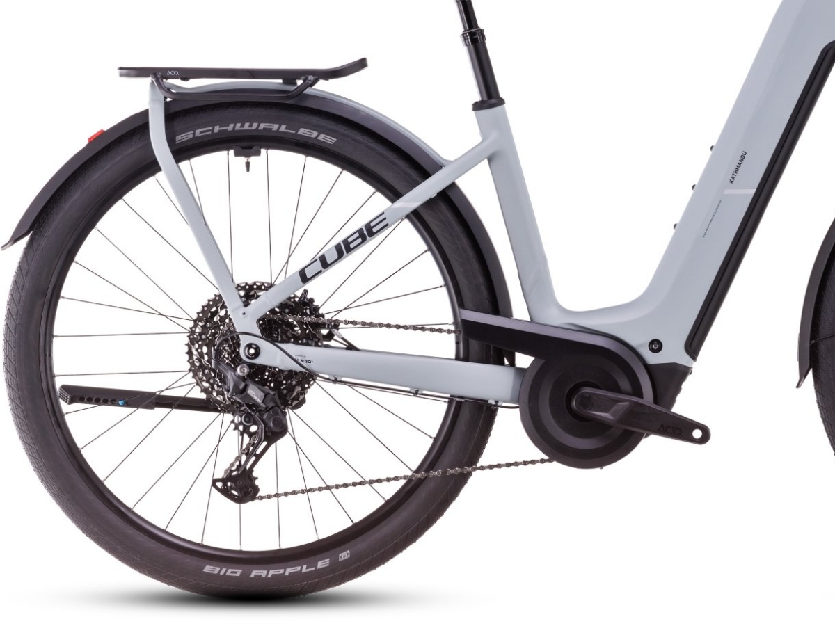 Das Kathmandu Hybrid EX ABS 800 von CUBE hält Touring-Fans auf allen Routen zuverlässig den Rücken frei. Wie? Mit seinen kraftvoll und supersicher verzögernden hydraulischen Magura MT C ABS Scheibenbremsen mit Anti-Blockier-System. Damit hat das Vorderrad durchwegs erstklassigen Grip, und zwar bei jedem Wetter und selbst bei sehr abrupten Bremsmanövern. Der CX Motor von Bosch bringt bis zu 85 Nm Drehmoment – und damit extra viel Schub nach vorn – mit und wird dabei von einem 800 Wh starken PowerTube Akku gespeist. Diesem Set-up haben wir eine einfach bedienbare Shimano Cues 11-Gang Schaltung zur Seite gestellt, welche die Power top übersetzt aufs Hinterrad bringt. Wer mit Gepäck unterwegs ist, ob auf dem Weg ins Büro oder bei einer längeren Wochenendausfahrt, profitiert von unserem anpassbaren und superstabilen integrierten Gepäckträger IC 3.0. Ein Komplettset an Zubehör verleiht diesem Tourer den letzten Schliff. Dein Bike-Abenteuer, dein Fahrspaß!