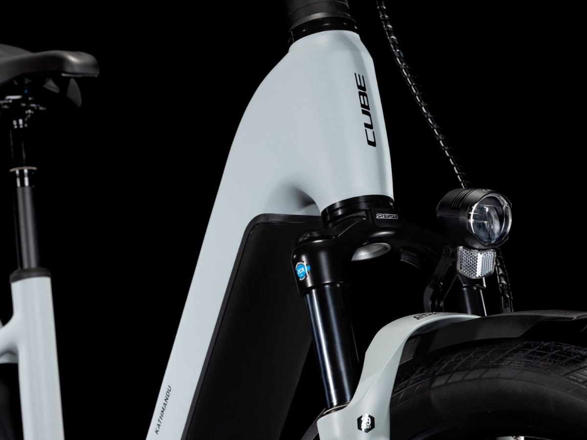 Der Tiefeinsteiger-Rahmen des CUBE Kathmandu Hybrid macht seinem Namen alle Ehre, denn er erleichtert das Auf- und Absteigen und die Tour kann direkt losgehen! Doch da ist noch mehr, zum Beispiel der samt PowerTube Akku ästhetisch und sauber ins Design integrierte CX Motor von Bosch. Unsere Efficient Comfort Geometry arbeitet harmonisch mit der 100 mm Federgabel Hand in Hand, was die Kontrolle vor allem unter schwierigen Bedingungen optimiert. Dazu die interne Zugverlegung, die der cleanen Optik des Chassis in die Karten spielt und den Wartungsaufwand maßgeblich reduziert. Was noch? Ein vielseitiges, beinahe unzerstörbares UDH für einfache Ersatzteilverfügbarkeit, ein integrierter Kettenschutz und unser stabiler, robuster, überaus formschöner integrierter Gepräckträger IC 3.0, auf dem alles Platz findet, was auf Abenteuertour mit muss.