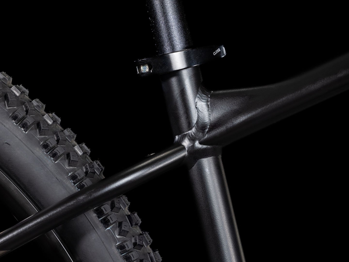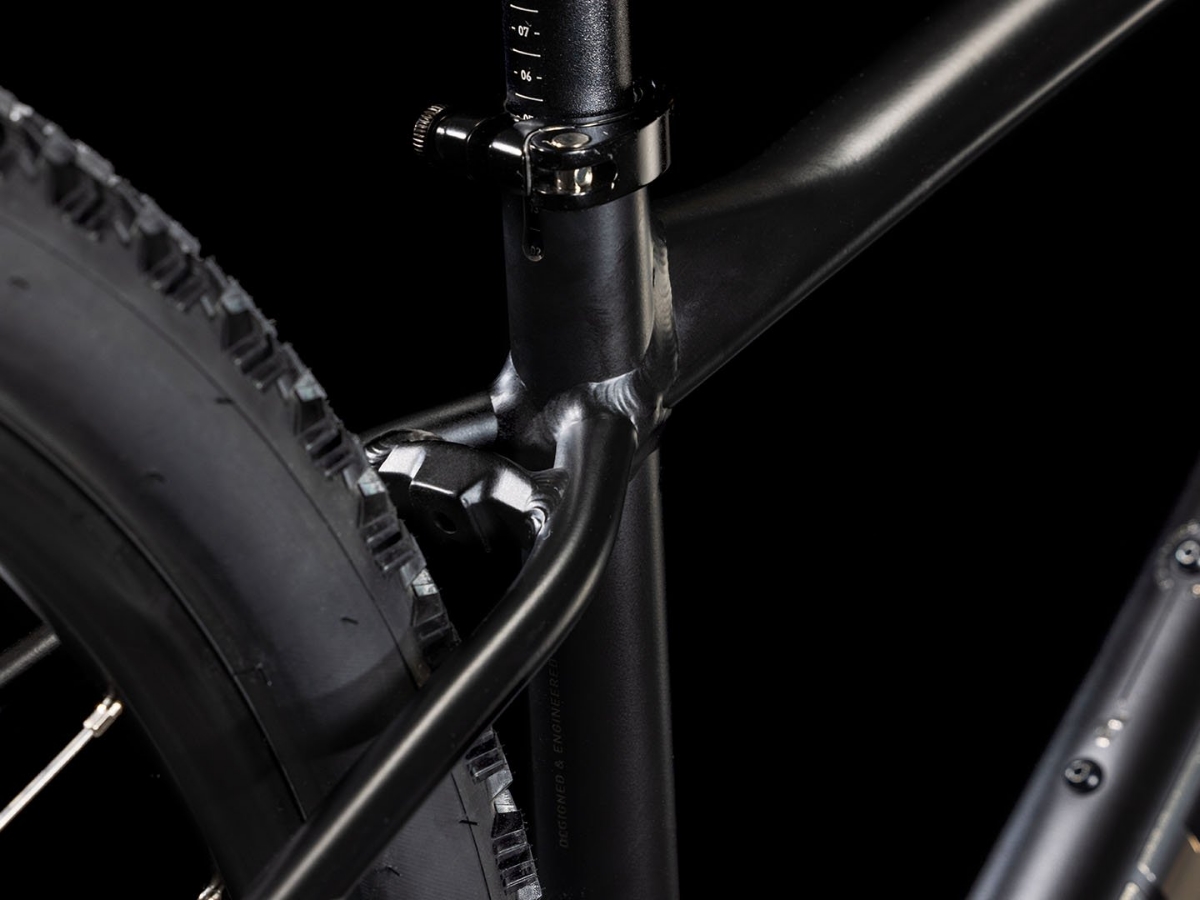 Der Aim Rahmen besticht mit seinem supercleanen Look – verantwortlich dafür: die im Smooth Welding Verfahren hergestellten Verbindungen an Steuerrohr und Sattelrohr. Außerdem haben wir ihm ein geschraubtes Tretlager gegeben und die Züge ins Innere verlegt, damit sie ihren Job lange machen und einfach gewartet werden können. Es gibt sogar eine Aufnahme für eine Flat Mount Scheibenbremse, die nahtlos in die Seitenständeraufnahme integriert ist. Montagepunkte für ACID Schutzbleche und Gepäckträger sind auch mit dabei. Die spezielle Geometrie hat ein niedrigeres Oberrohr für superzuverlässiges Handling und lässt viel Platz für breite, griffige, komfortabel rollende 2.25 Zoll Reifen. Dazu ist unser Size Split System breit aufgestellt – so findest du mit Sicherheit das für dich perfekt passende Aim.