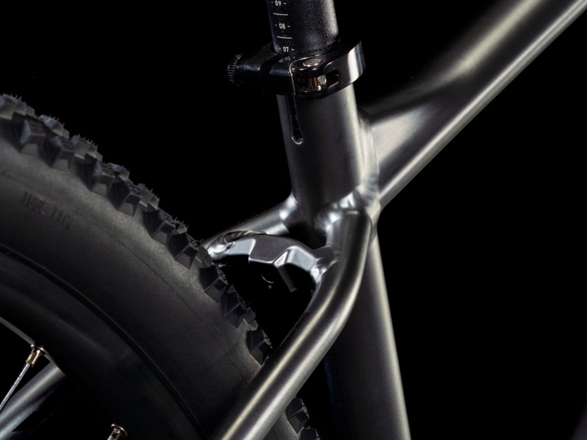 Der Aim Rahmen besticht mit seinem supercleanen Look – verantwortlich dafür: die im Smooth Welding Verfahren hergestellten Verbindungen an Steuerrohr und Sattelrohr. Außerdem haben wir ihm ein geschraubtes Tretlager gegeben und die Züge ins Innere verlegt, damit sie ihren Job lange machen und einfach gewartet werden können. Es gibt sogar eine Aufnahme für eine Flat Mount Scheibenbremse, die nahtlos in die Seitenständeraufnahme integriert ist. Montagepunkte für ACID Schutzbleche und Gepäckträger sind auch mit dabei. Die spezielle Geometrie hat ein niedrigeres Oberrohr für superzuverlässiges Handling und lässt viel Platz für breite, griffige, komfortabel rollende 2.25 Zoll Reifen. Dazu ist unser Size Split System breit aufgestellt – so findest du mit Sicherheit das für dich perfekt passende Aim.
