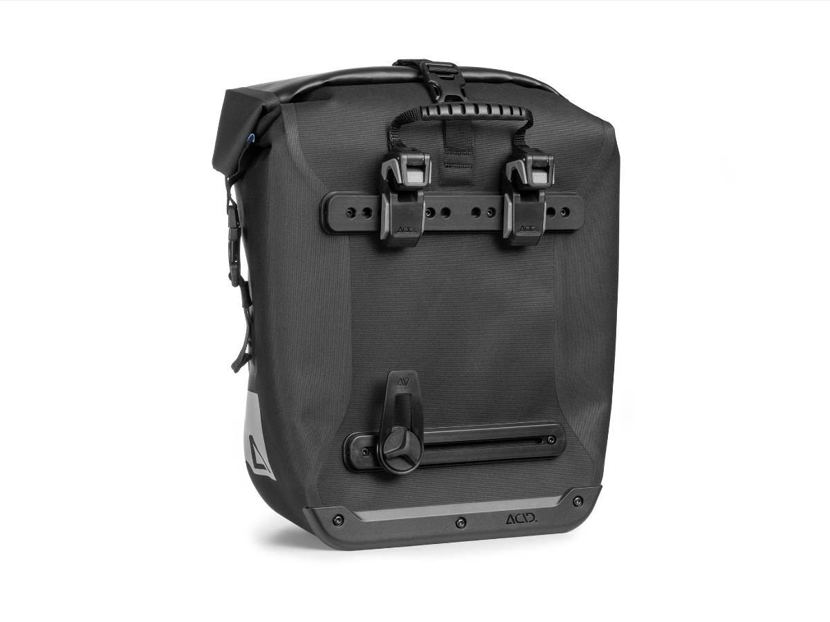 Die abriebfeste, wasserdichte ACID Seitentasche PRO 20/2 SMLink 2.0 ist ideal für Alltags- und Tourenradler, die Wert auf langlebige Produkte legen. Das ACID Einhängesystem SMLink 2.0 sorgt für eine schnelle und sichere Montage an verschiedenen Gepäckträgern. Reflektierende Elemente erhöhen die Sichtbarkeit bei schlechten Lichtverhältnissen im Straßenverkehr. Der große Stauraum bietet genügend Platz für Einkäufe oder Equipment. In der Innentasche mit Reißverschluss lassen sich zum Beispiel Kleingeld oder Schlüssel sicher verstauen. Mit dem Schultertragegurt kann die Tasche auch zu Fuß bequem mitgenommen werden.