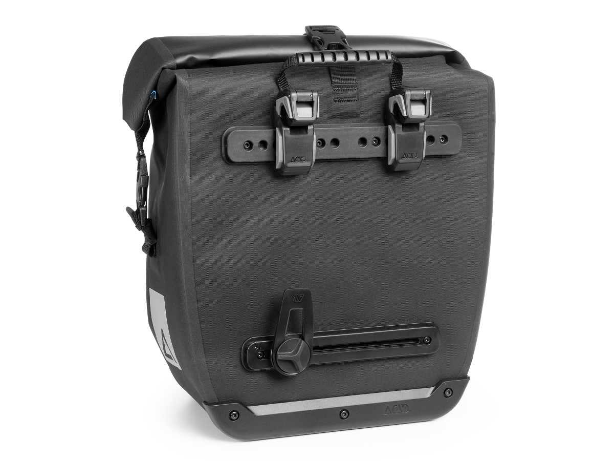 Die abriebfeste, wasserdichte ACID Seitentasche PURE 20/2 SMLink 2.0 ist ideal für Alltags- und Tourenradler, die Wert auf langlebige Produkte legen. Das ACID Einhängesystem SMLink 2.0 sorgt für eine schnelle und sichere Montage an verschiedenen Gepäckträgern. Reflektierende Elemente erhöhen die Sichtbarkeit bei schlechten Lichtverhältnissen im Straßenverkehr. Der große Stauraum bietet genügend Platz für Einkäufe oder Equipment. Mit dem Schultertragegurt kann die Tasche auch zu Fuß bequem mitgenommen werden.