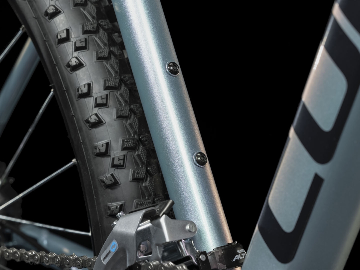 Der Access WS Rahmen besticht mit einem supercleanen Look – verantwortlich dafür: Die im Smooth Welding Verfahren hergestellten Verbindungen am Steuerrohr und Sattelstützenprofil. Außerdem haben wir die Züge ins Innere verlegt, damit sie ihre Aufgabe lange machen und leicht gewartet werden können. Es gibt sogar eine Aufnahme für eine Flat Mount Scheibenbremse, die nahtlos in die Seitenständeraufnahme integriert ist. Montagepunkte für ACID Schutzbleche und Gepäckträger sind auch mit dabei. Die Geometrie hat ein niedrigeres Oberrohr für noch zuverlässigeres Handling und lässt viel Platz für breite, griffige, komfortabel rollende 2.25 Zoll Reifen. Auch haben wir unser SizeSplit System breit aufgestellt – dadurch findet jede Fahrerin die perfekt passende Access WS Rahmengröße für sich.