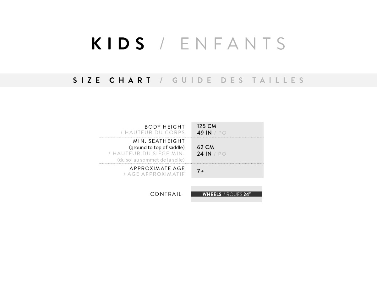 Das für größere Kids entwickelte 24-Zoll-Contrail 400 ist leicht, robust und perfekt für tägliche Fahrten. Ob auf dem Weg zur Schule mit Freunden oder auf Entdeckungstour mit der Familie, dieses Fahrrad steht für grenzenlose Möglichkeiten – jeden Tag!